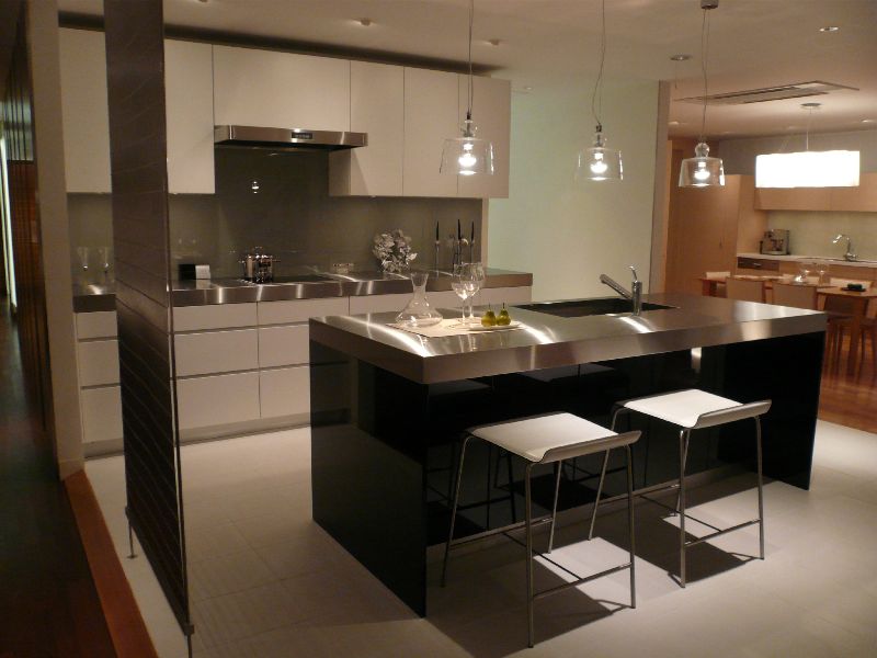 フルオーダーのキッチンを作っているメーカーです。予定にはなかったのですが急遽見に行くことにしました。4階建てのショールームですが、入って最初に出 迎えてくれるキッチンがまたすごい。家具みたいです。シックなフローリングに映えるステンレストップのキッチン、見ているだけでもため息が出ます。案内係 の方に最初に通してもらったのは4Fのショールーム。これがまたすごすぎます。ゼブラウッドで統一された扉など、1Fにあったキッチン以上の家具度爆発で す。キャビネットも統一されていて、ざっとお値段900万円との由。はぁ〜・・・。コンセプトモデルのお風呂もあり、とてもしゃれていました。まだ販売は していないそうです。3Fにはもうちょっと手が届きそうなキッチンたちが。どれをとってもしゃれなキッチンばかりです。2Fにくるとさらにもう少し一般的なキッ チンが展示されています。コーヒーを頂きながら案内係の方に説明してもらいました。しかし案内係の女性の方もきれいな方ばかりです。ちょっとしたブティッ クといった感じでしょうか(^^;;