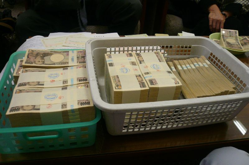 を入れ、高額な現金が必要であることを連絡。準備はしていますとのお返事でいざ店頭へ向かいます。受付で通常通り引き出し伝票を書き、提出。待つこと5分少々で現金が現れました。大きめの茶封筒に入っています。結構重かったです(^^;;
