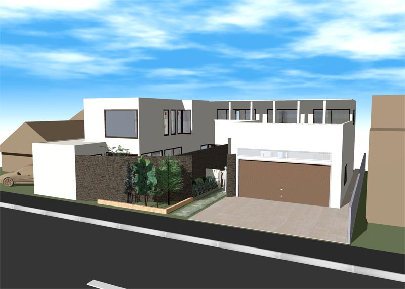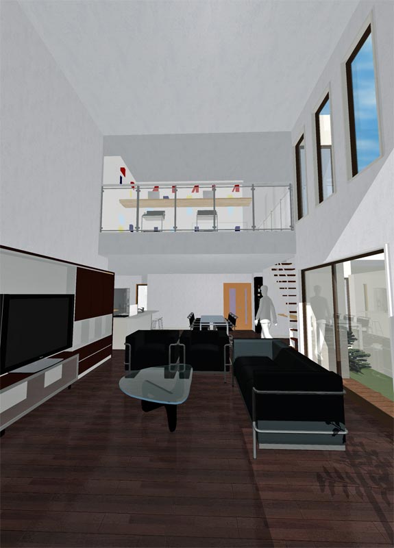 以前は3DマイホームデザイナーLSやLS2を使っていたのですが、レンダリングサイズが小さいのに我慢ならず結局Pro版を購入してしまいました。業界人ではないのでプレゼンボードデザインなどは必要ないのですが仕方有りません。おまけにレンダリング結果は決してきれいとはいえません。しかし、間取り図を適当にトレースして建具や窓を配置すればあっという間に家が立ち上がります。これはとても便利。使いこなせば相当の表現ができるようですが、まだまだヒヨっ子です。そんな中制作してみたのが以下の図。